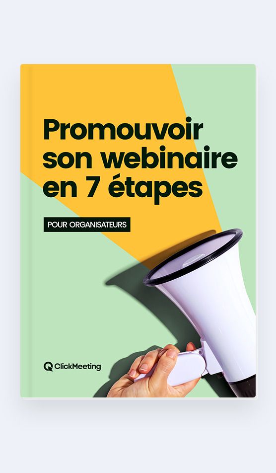 Vous voulez attirer plus de participants à vos webinaires ? Utilisez des méthodes éprouvés pour promouvoir vos webinaires en ligne. Grâce aux conseils des experts de ClickMeeting, vous apprendrez à prendre en charge de manière exhaustive la promotion de vos événements.